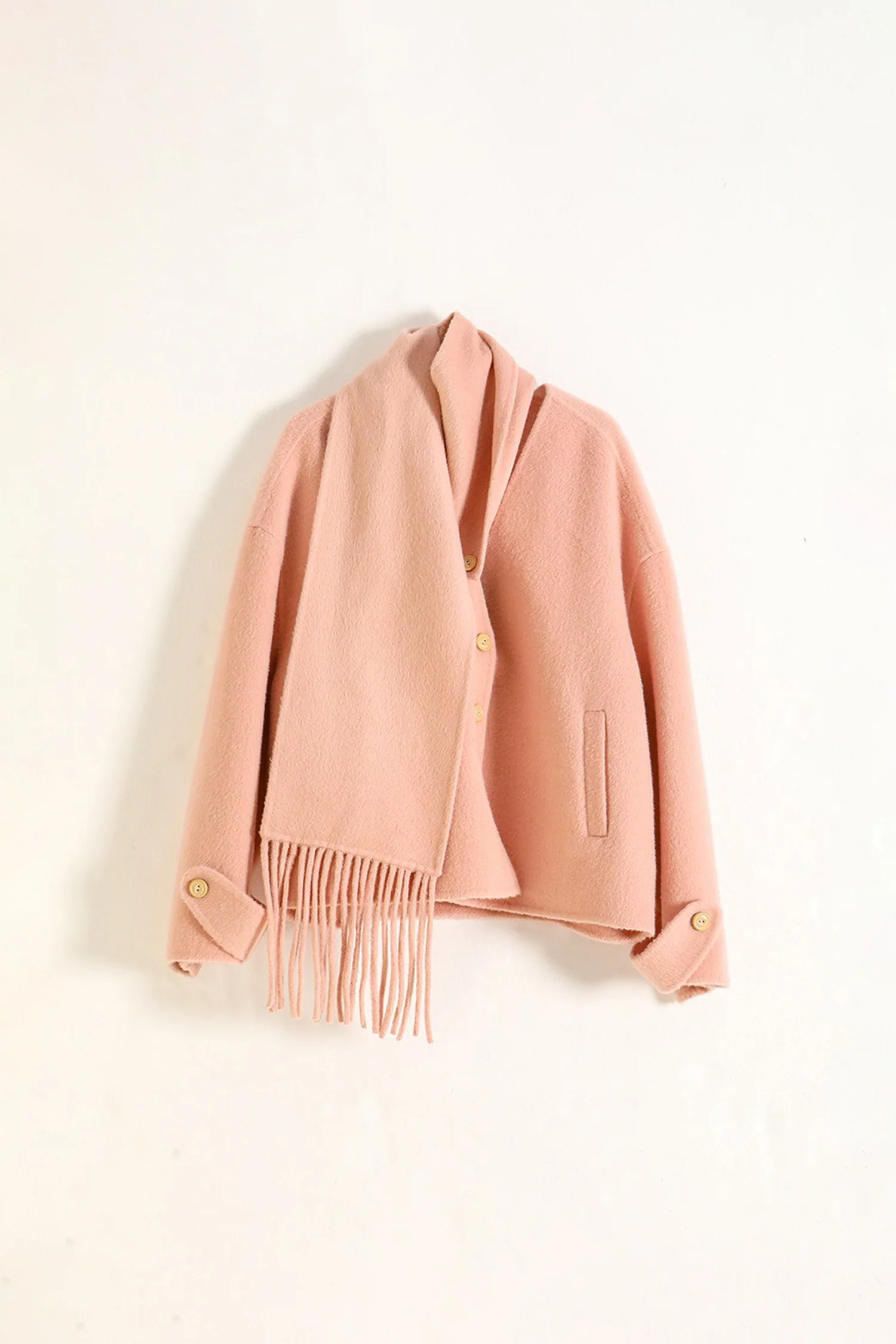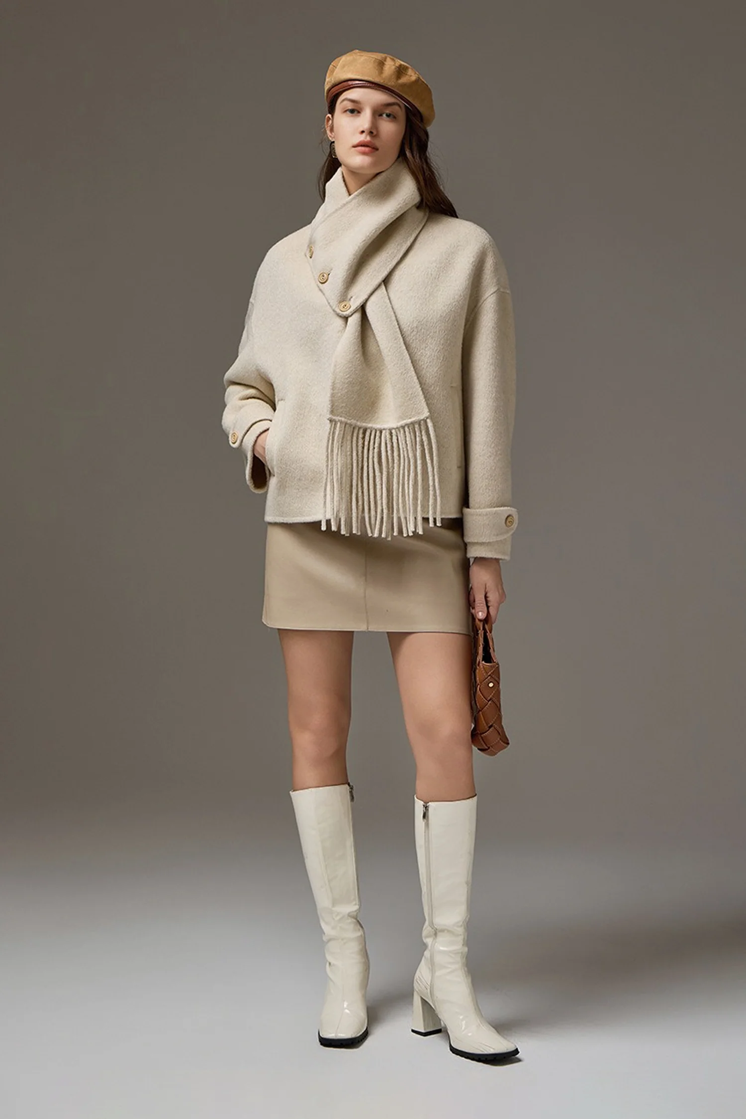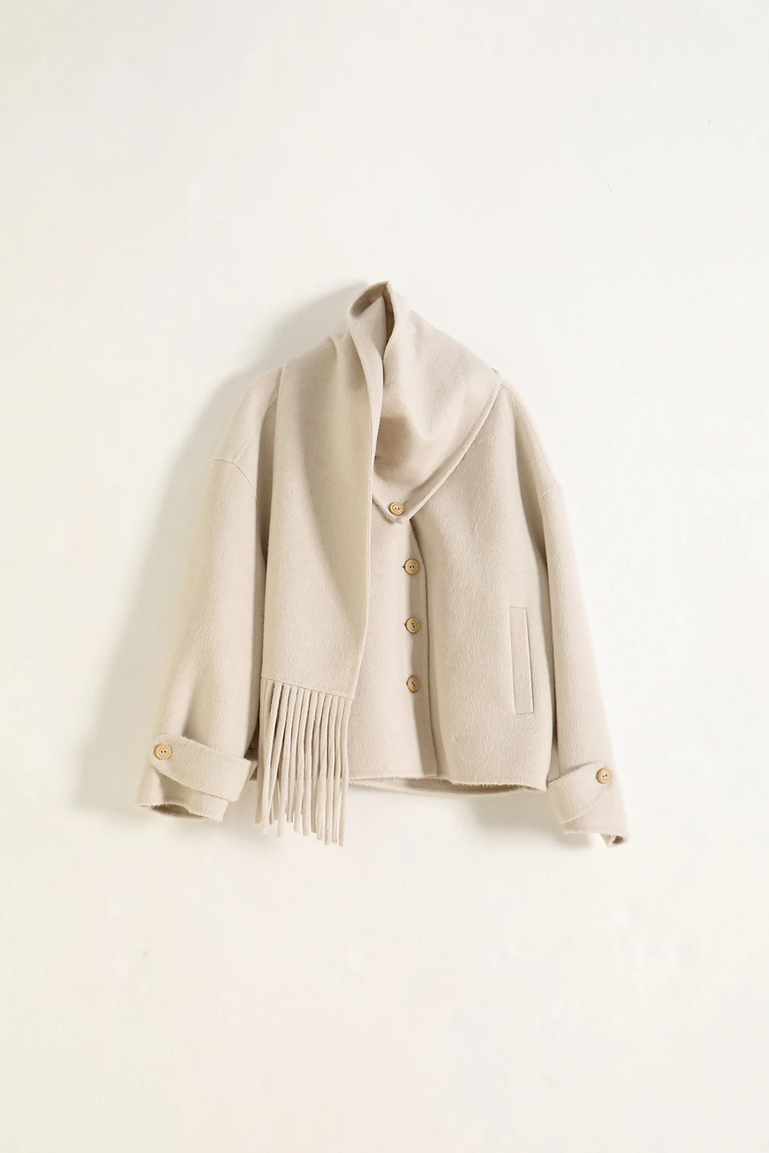 Cropped Double-Faced Silk-Wool Jacket with Detachable Scarf