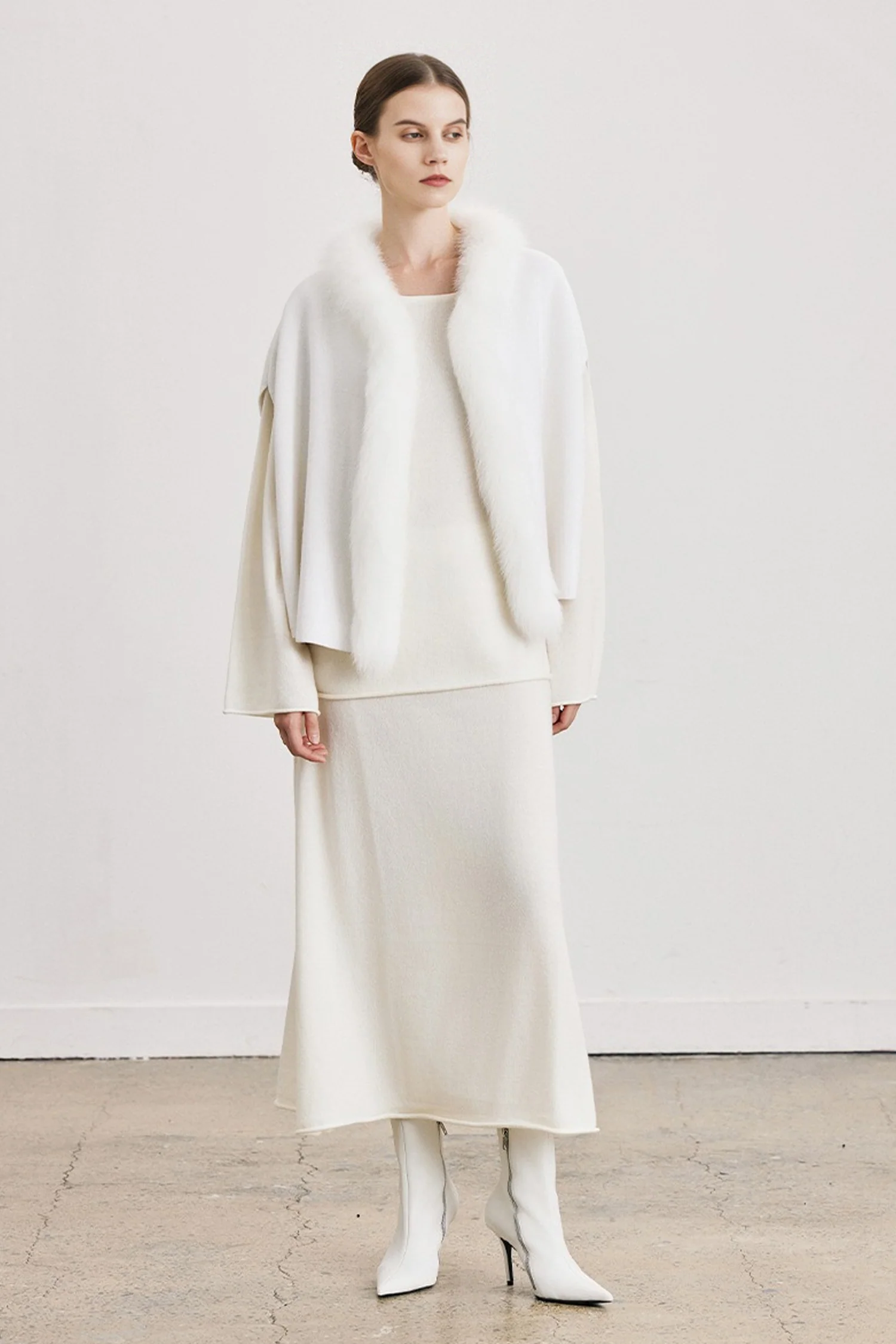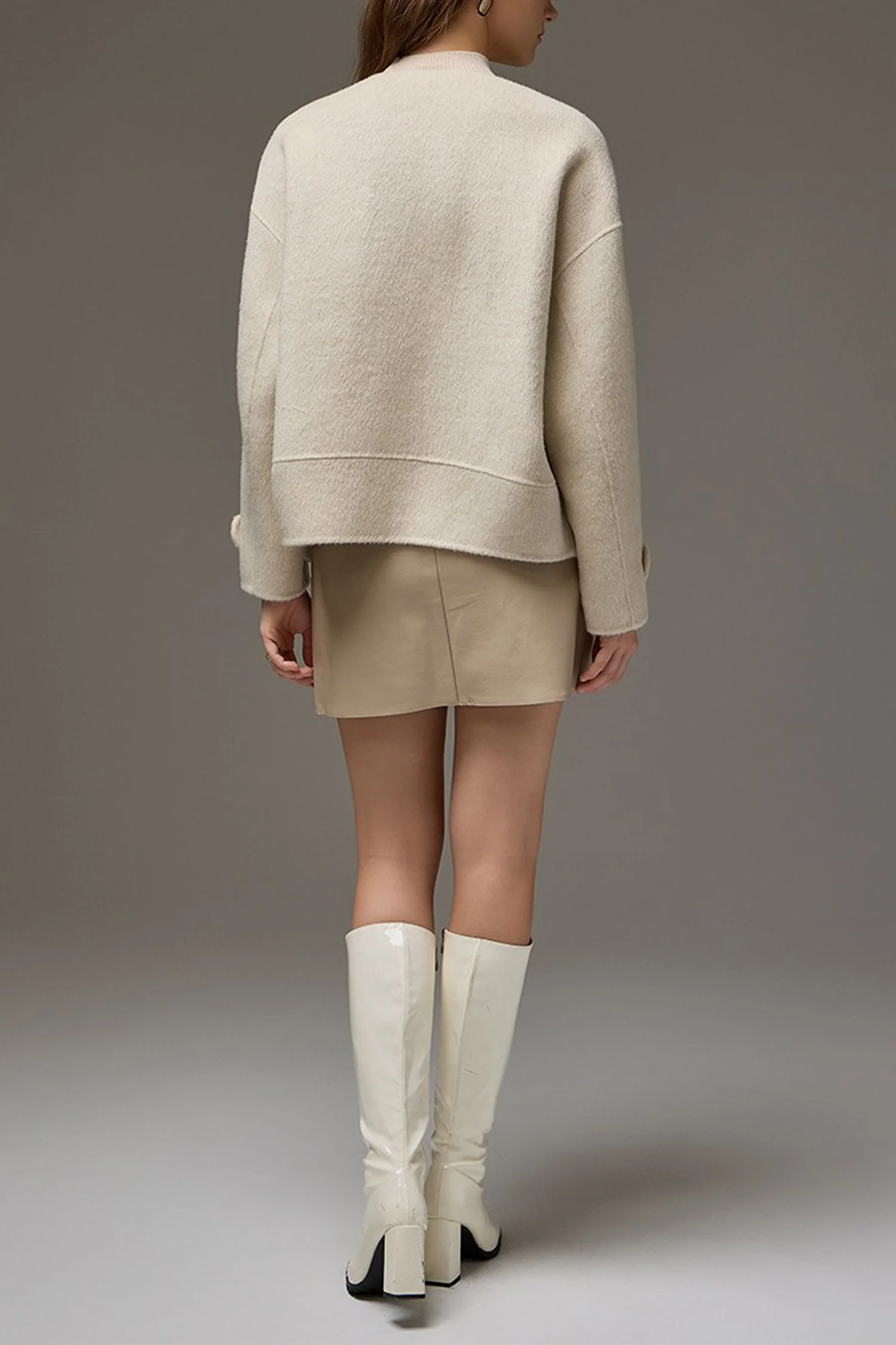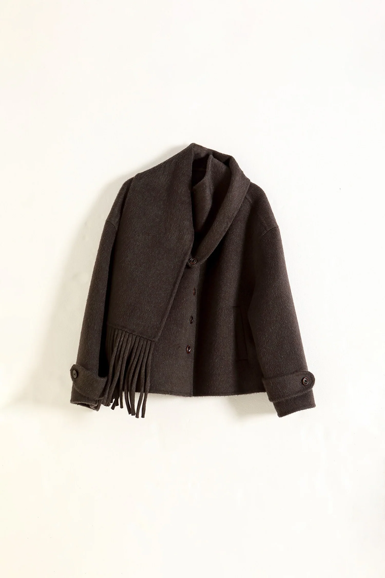 Cropped Double-Faced Silk-Wool Jacket with Detachable Scarf